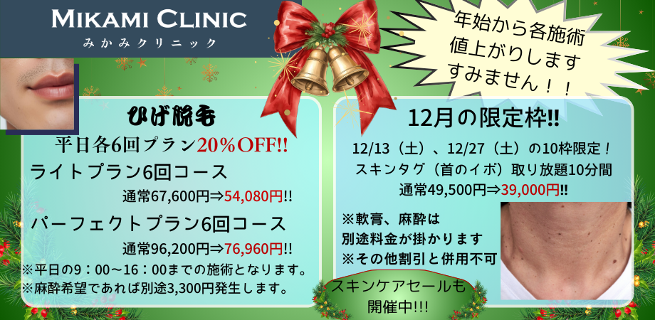 12月13日、27日に10枠限定で首のイボ(スキンタグ)の取り放題を